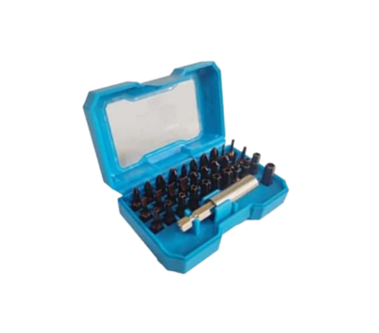 | PBS32 | 32 PCS. CONTENTS Flate Bits | FLATE BITS :-2,2.5,3,4,5,6 PHILIS BITS:-0,1,2,3 HEX BITS WITH TEMPER HOLE:-3,4,5,6 POZI DRIVE BITS:-0,1,2,3 TROX BITS WITH TEMPER HOLE:-T8, T10, T15 T20 ,T25, T27, T30, T35, T40 TRIWING BITS:-1,2,3,4 QUICK RELEASE BIT HOLDER |
